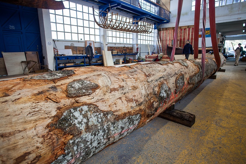 La quilla de la réplica de la nao “San Juan”, ballenero vasco del siglo XVI, obra de la Factoría Marítima Vasca “Albaola”, es de madera de haya.
