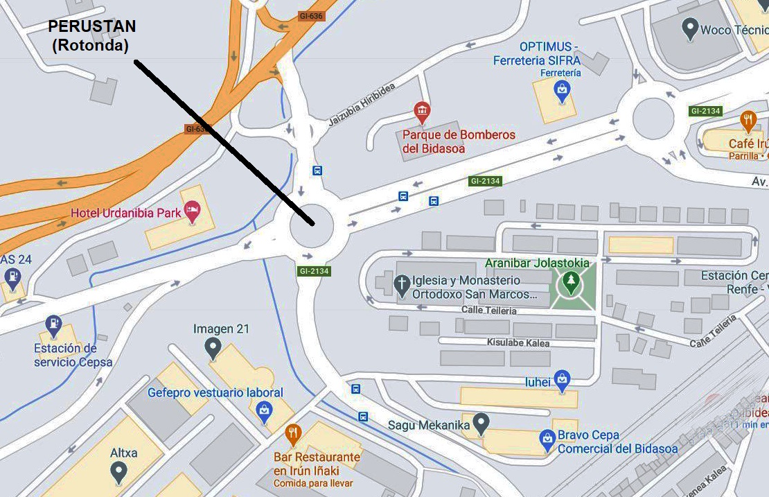 Parque de Bomberos del Bidasoa, en cuyas cercanías se encontraba el caserío Perustan y la rotonda que actualmente lleva su nombre.