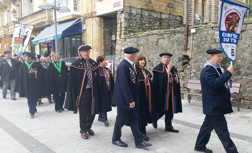 Ha ayudado a nuestra Cofradía desde el mismo momento de nuestra constitución. Con infinita paciencia nos han ido introduciendo en el apasionante mundo de las Cofradías, presentándonos en cada uno de los capítulos a los que asistíamos a un lado y otro del Bidasoa. Su experiencia y apoyo continuado ha sido fundamental en la consolidación de nuestro grupo. Y no solo eso. En nuestra presentación en sociedad en 2016, fueron nuestros padrinos.. A lo largo de sus 38 Capítulo han entronizado a más de 250 personas y entidades. Una marca muy difícil de lograr.